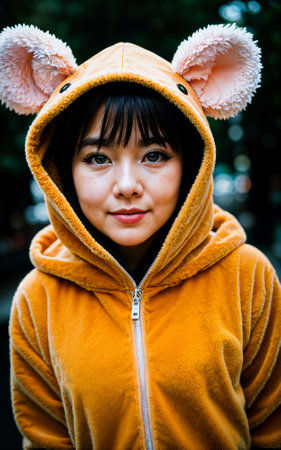 photo of woman wearing kawaii animal Kigurum jacket hoodie , generative AI