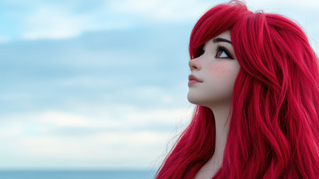 Adult White Man with Red Straight Hair photorealistic illustration.