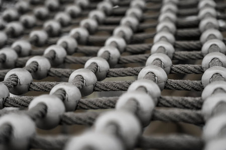 Mesh rope on bright brown background in playground. Rope Mesh.