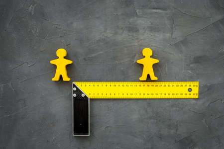 Keep social distance concept with two man figures and metal ruler