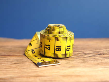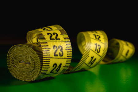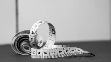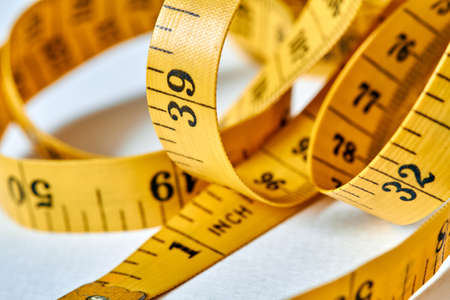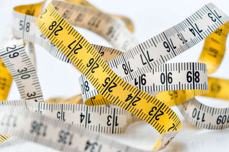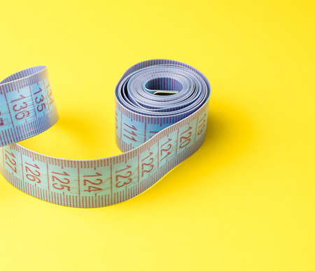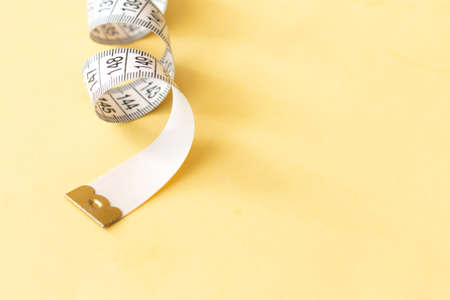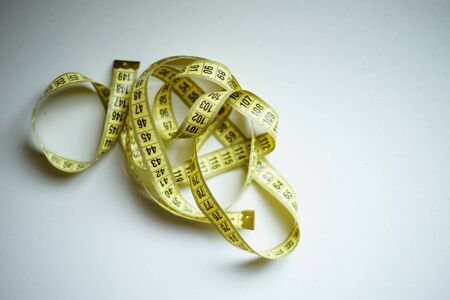 Yellow white tailor tape measure to take measurements and measure