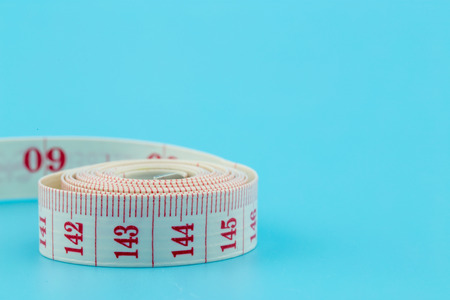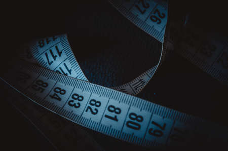centimeter tape on a blue background. art soft focus