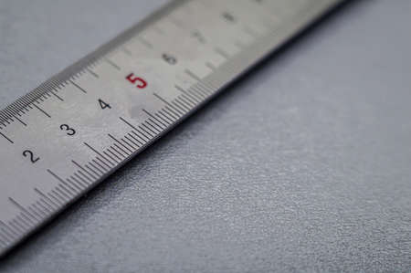 Close-up of the metal ruler. Selective focus, copy space