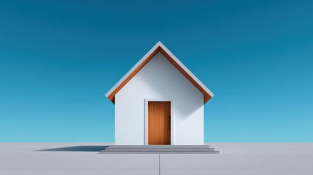 Modern minimalist home illustration with ample copyspace for advertising and bold colors. Real Estate conceptual image.