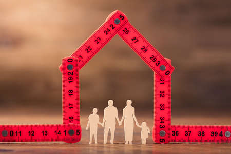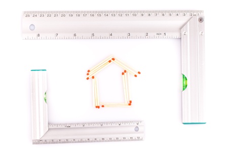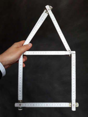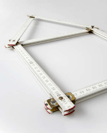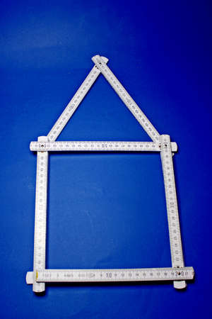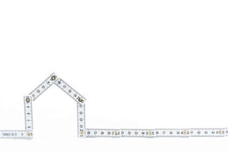 Folding rule in the shape of a house, white background and copy space