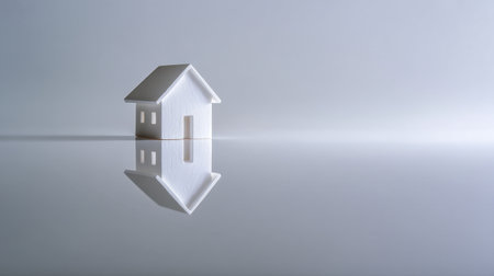 A minimalistic white house model beautifully reflects on a smooth surface, symbolizing home, design, and tranquility in residential and real estate themes.