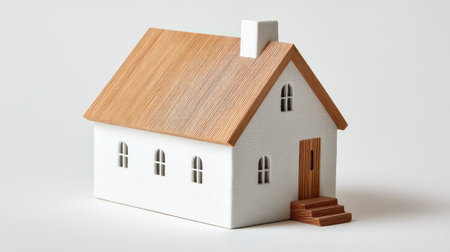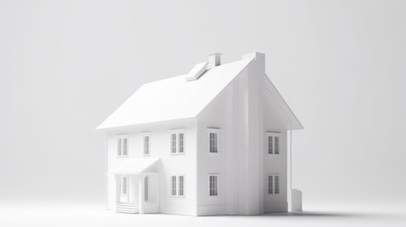 A pristine white house model, showcasing minimalist architecture and design principles. Perfect for illustrating concepts of home, property, and real estate.