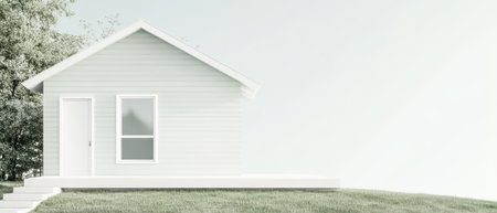 A pristine, 3D-rendered tiny house stands out against a pure white background, symbolizing modern living and property concepts, Generative AI