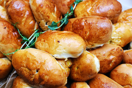 Preparation of belyashes. Traditional russian meat pies belyashi. belyashes on a table. Russian, Bashkir and Tatar cuisine.