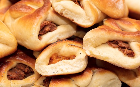 Bukharian (Uzbek) traditional pastries, stuffed with lamb meet and onion, with sesame and nigella