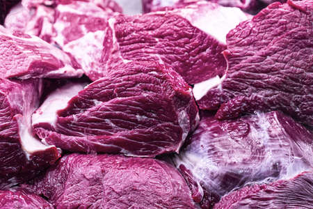 Texture or background of tasty fresh meat. Red beef meat close up texture. Meat food background