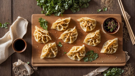 Chinese Dumpling top view. generative ai High quality