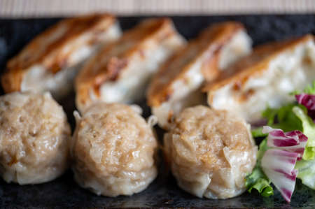 Pork dumplings in plate. Close up