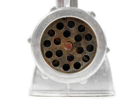 Meat grinder. Old retro meat grinder grunge rust isolated on white with clipping path. Design element.