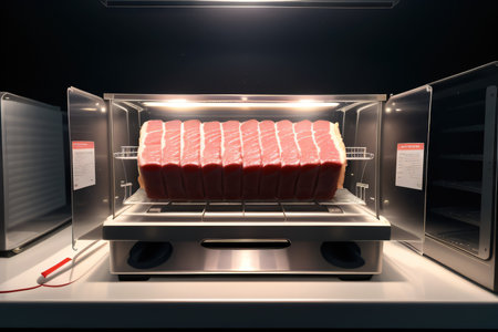 A futuristiclooking computer analyzing the nutritional components of labgrown meats.. AI generation