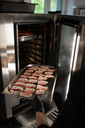 Baked meat in the oven. 3d rendering, 3d illustration.