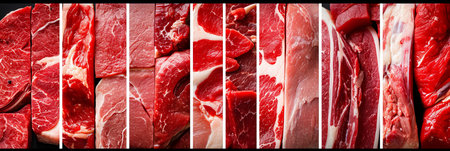 A stunning close-up shot of fresh meat cuts, showcasing rich textures and colors, perfect for culinary projects, food photography, and recipe presentations.