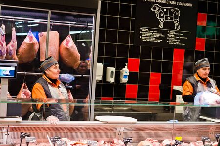 Kiev, Ukraine - September 4, 2019: Silpo supermarket. Workers at grocery store.