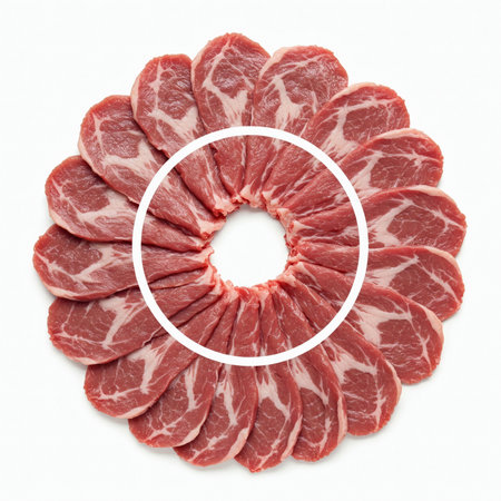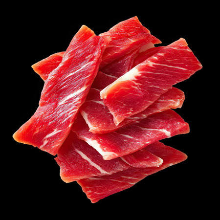 A thinly sliced beef with clear marbling, showcasing vibrant red color and rich texture, perfect for culinary dishes or grilling. ideal for gourmet recipes and presentations