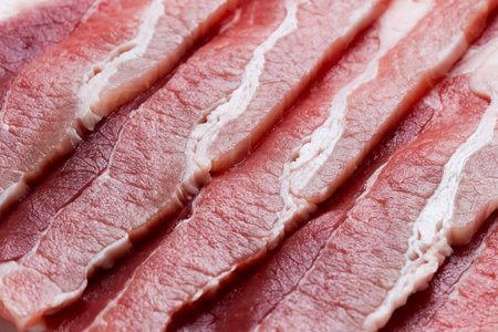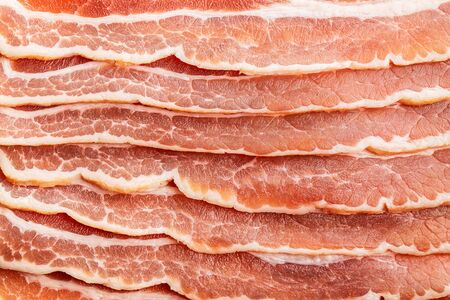 Fresh sliced collar pork raw closeup. Raw Bacon Slices