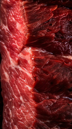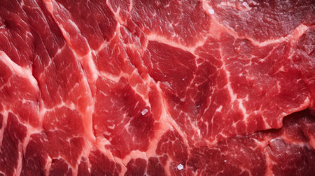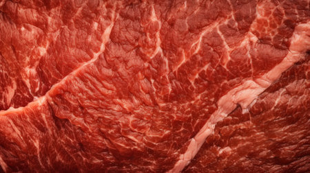 Close-up of fresh raw red beef meat steak structure. Food background. Generative AI.
