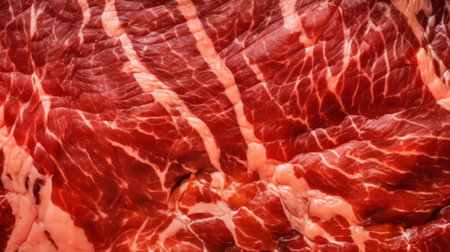 Close-up of fresh raw red beef meat steak structure. Food background. Generative AI