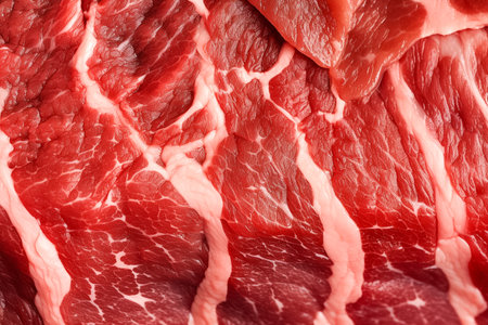 Fresh meat background. Raw uncooked red beef meat texture. Closeup pattern