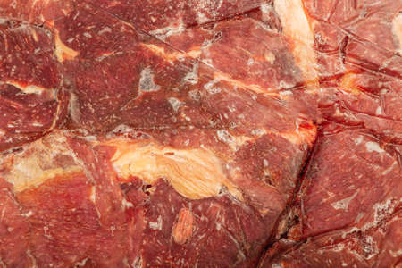 Beef Texture. Freezed Meat Background. Closeup of a Piece of Sirloin for Steak