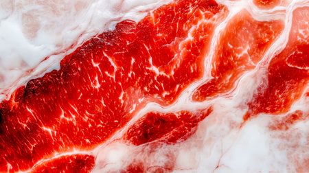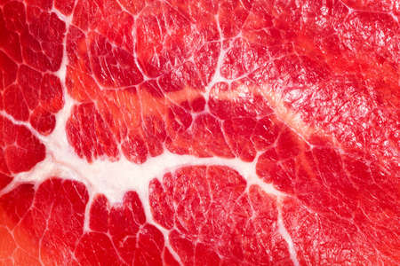 Abstract texture background, red pork meat with streaks, close-up