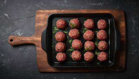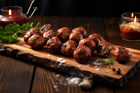 Savory Meatballs on Rustic Wooden Table: A Delicious Culinary Experience Awaits