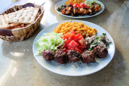 Food being eaten. Swedish meatballs potatoes cranberry on dish. A traditional scandinavian culinary.