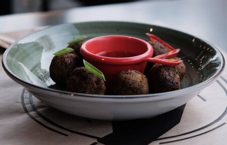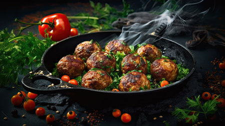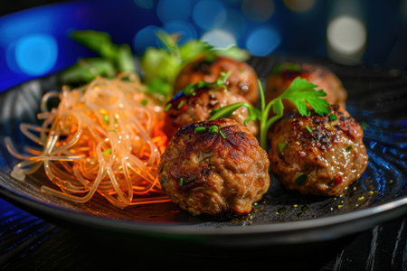 Delicious meatballs served on an artistic plate with fresh vegetables