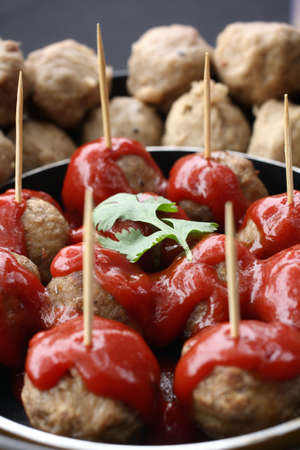 Delicious homemade meat balls in tomato sauce. Toned image.