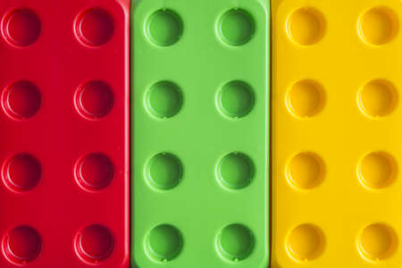 Colorful plastic toy building kit details close up