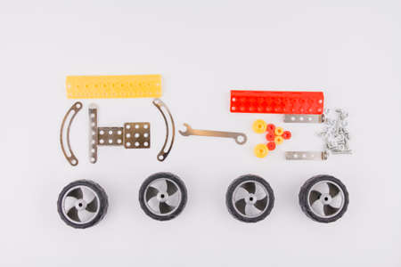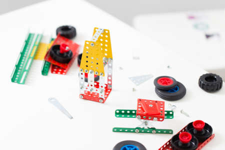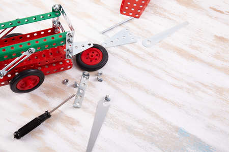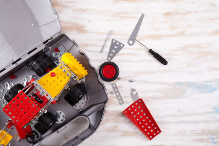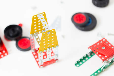 constructor toy metal close up. Flat lay