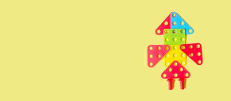 Rocket from a children's constructor on a yellow background