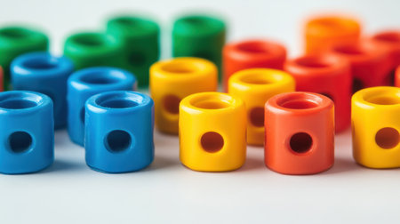 An assortment of colorful plastic beads in vibrant primary colors ideal for educational activities, crafts, and play. Perfect for enhancing creativity and motor skills.