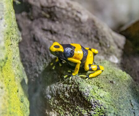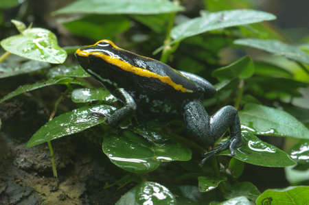 Black and yellow tropical poisonous frog of the rain forest