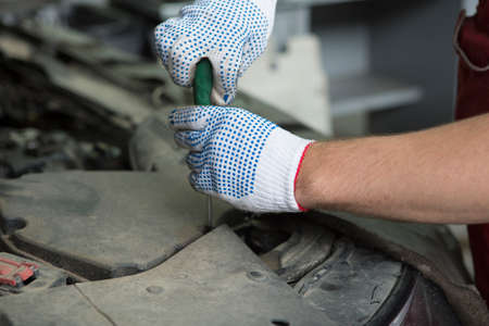 Removing and changing valves. Car mechanic checking automobile valves under the hood of the vehicle service shop