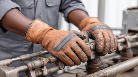 A dedicated technician works on heavy machinery, using gloved hands to perform vital maintenance and repairs in an industrial workshop setting, highlighting craftsmanship.
