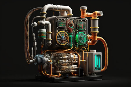 machine with tubing and sensors isolated on black background - industrial modern 4.0, created with generative ai