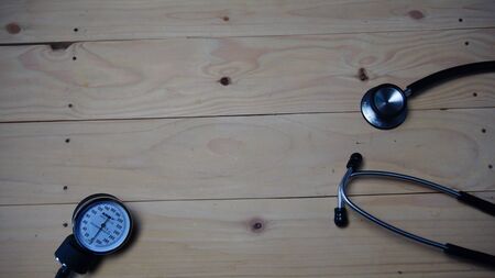 Medical equipment including a blood pressure meter on white background.