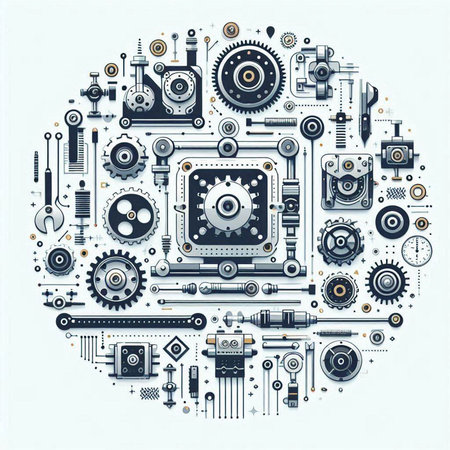 Circle made of mechanical parts on white background. Vector illustration.