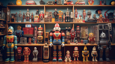 Ayutthaya, Thailand - September, 29, 2019 : Toy robot made of zinc as a collector at MILLION TOY MUSEUM in Ayutthaya, Thailand.