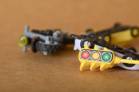 RIGA, LATVIA; March 15, 2021: lego minifigure with the set of city lego in Riga. Legos are a popular line of plastic construction toys manufactured by The Lego Group in Denmark