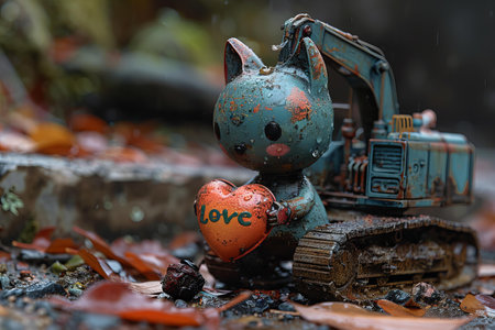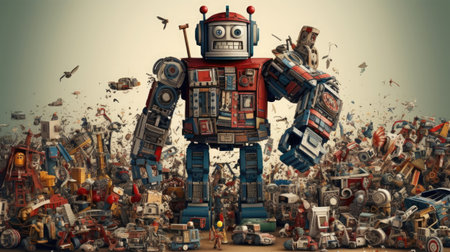 Colorful Robot Crying Made from Junk for Posters and Web. Generative AI