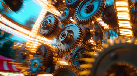 Mesmerizing gears in motion create a dynamic display of light and movement at dusk
