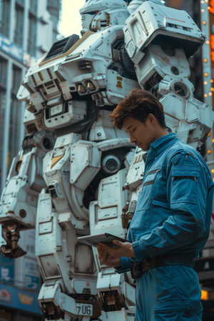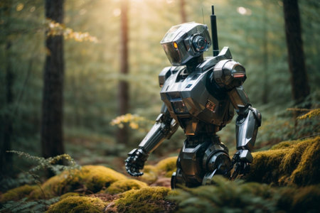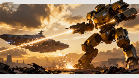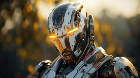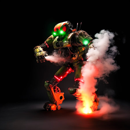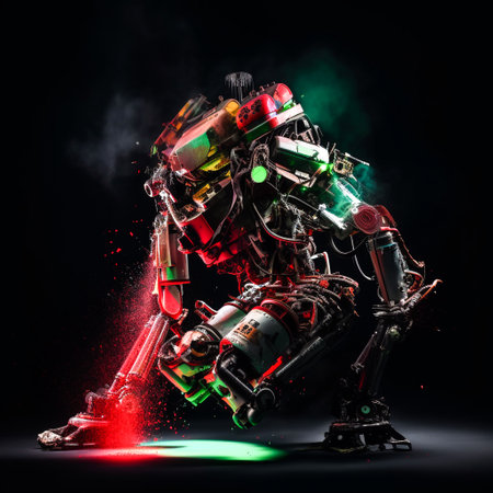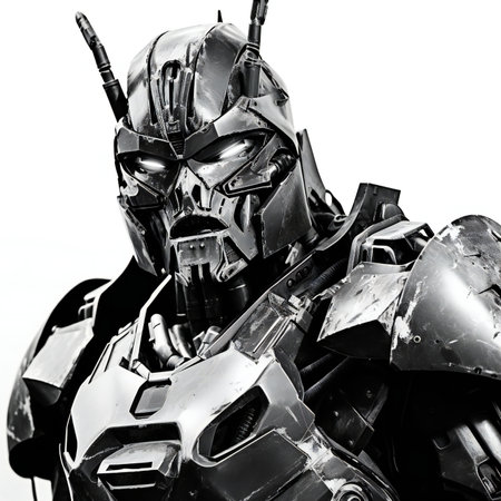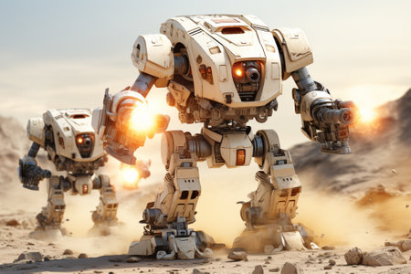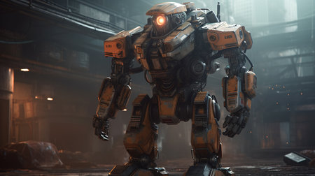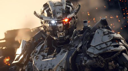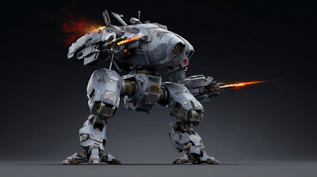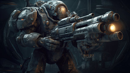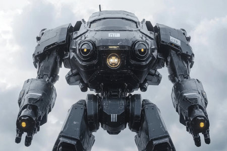 battle-ready robot with weapons systems and armor on display, created with generative ai