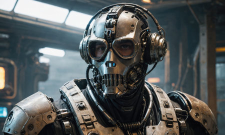 Portrt of a sci-fi robot warrior. An artistic abstract cyberpunk fantasy. Generative AI Art.
