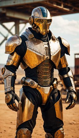 An AI generated illustration of an athlete clad in advanced, AI-powered armor - Intersection of sports and technology